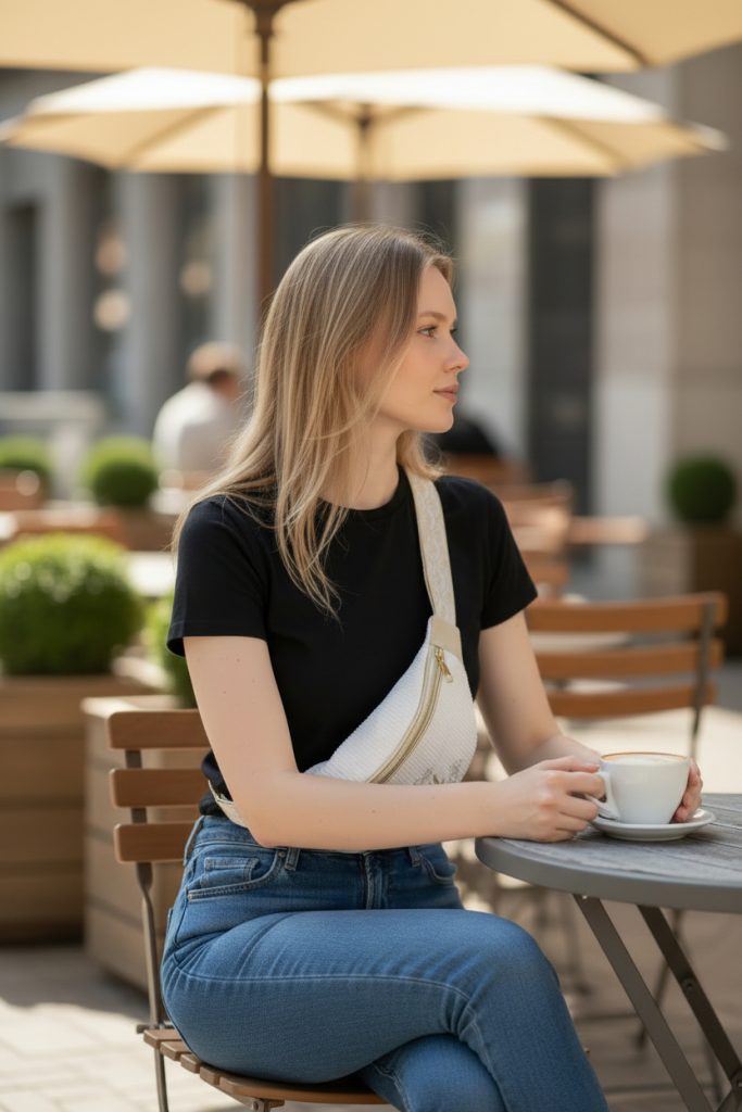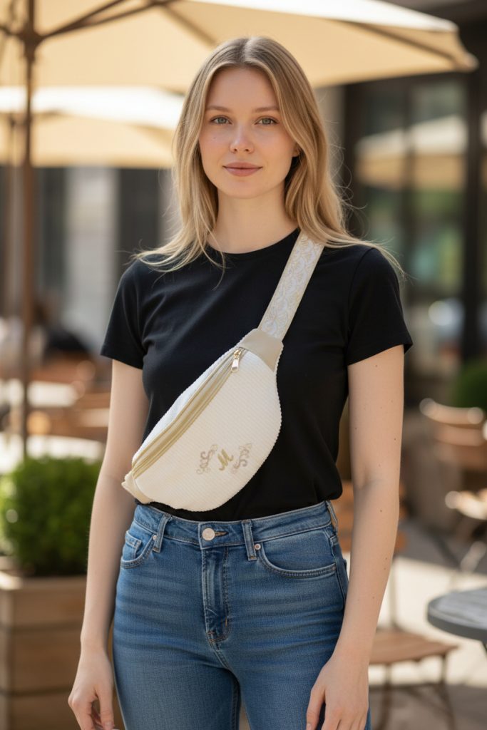 Alliez praticité et élégance avec ce sac banane personnalisable brodé, idéal pour ranger votre portefeuille, votre téléphone, vos clés et vos petits essentiels du quotidien.