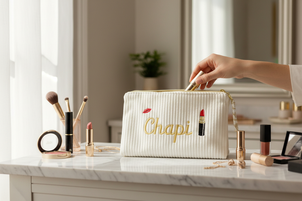 Alliez praticité et élégance avec cette trousse de maquillage brodée, idéale pour ranger vos essentiels beauté, accessoires ou petits objets de maquillage.